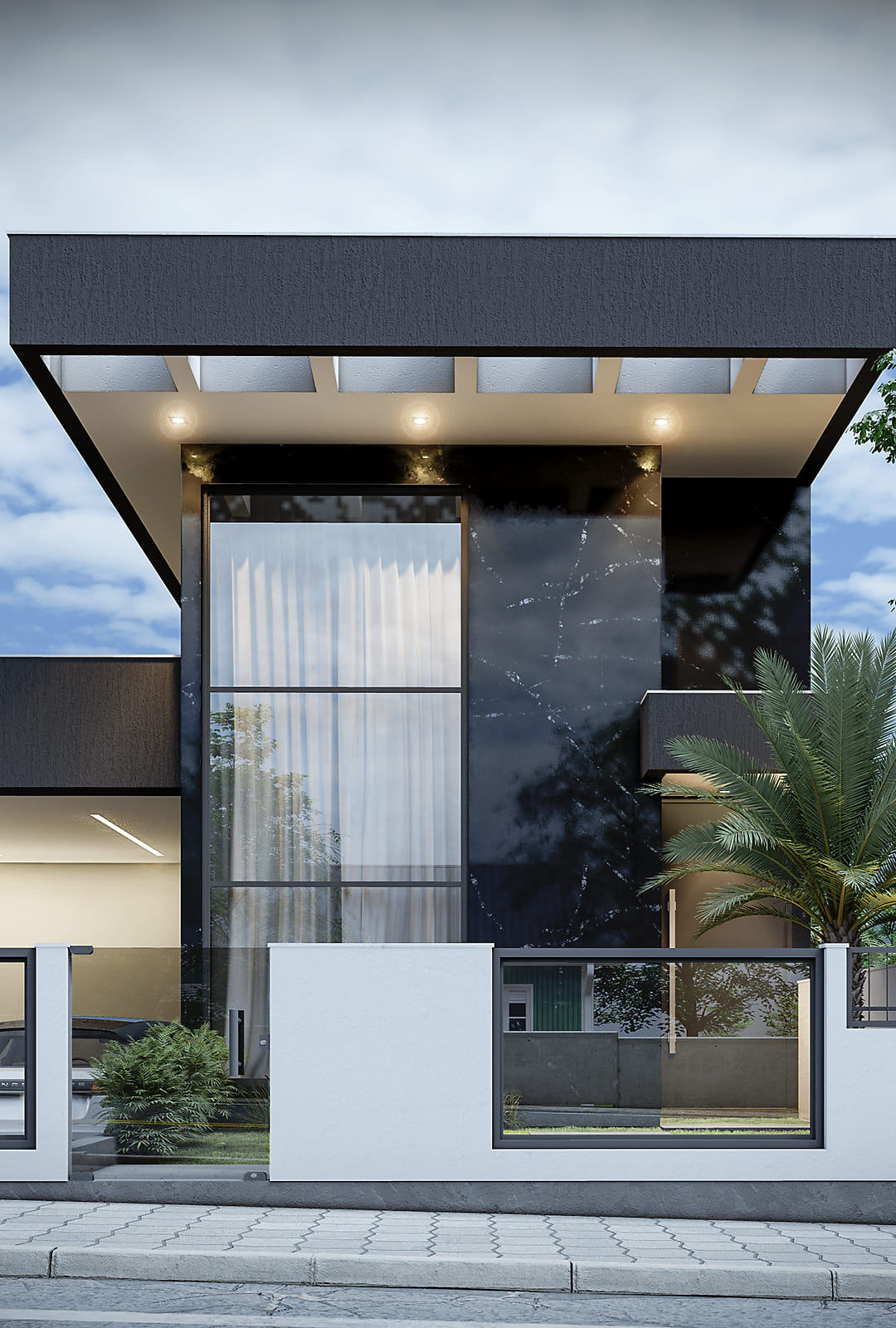 - Pele de vidro na parte frontal do imóvel